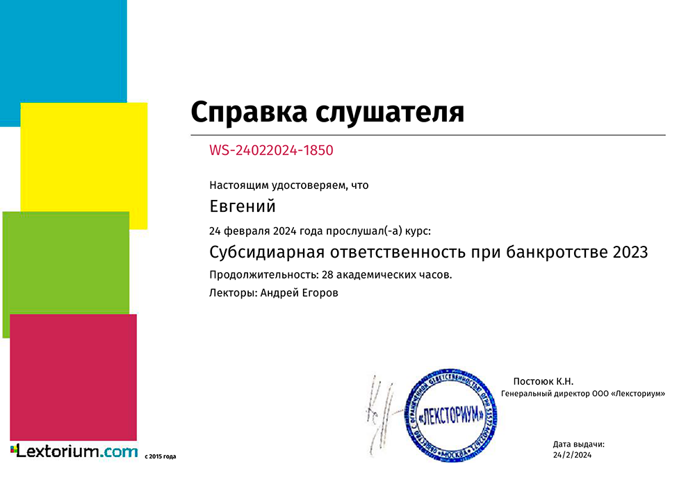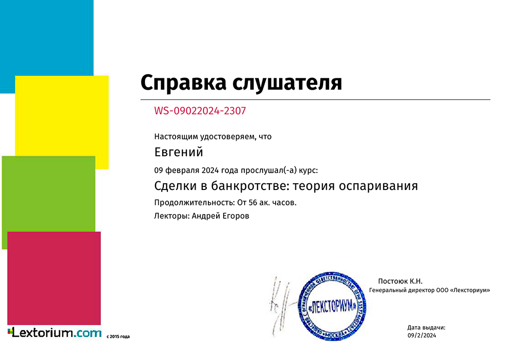 Повышение квалификации по банковским спорам (2023)